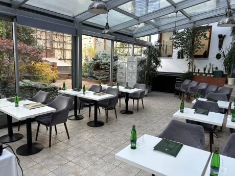 Další variantou pro konání Vaší akce, konference nebo školení může být příjemná zimní zahrada s celkovou kapacitou až 25 lidí. Prostor je rovněž klimatizovaný a sousedí s restaurací.